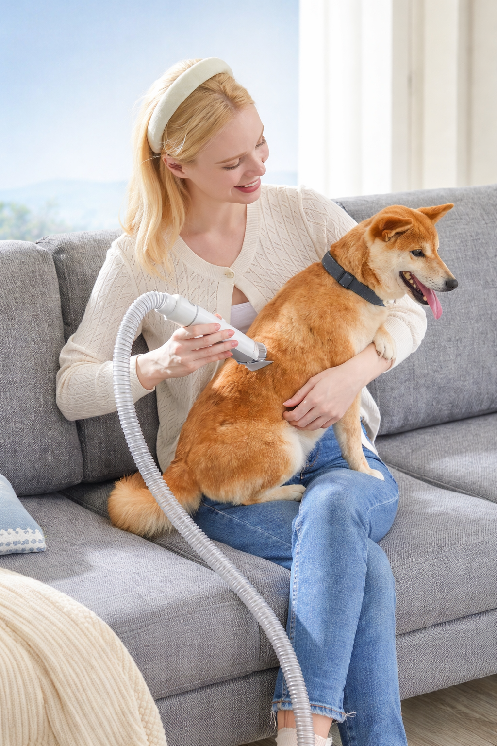 The Pawly Grooming Kit combines brushing, trimming, drying, and hair collection into one system. As you groom your pet, loose fur is pulled directly into the vacuum container instead of falling onto floors or furniture. The kit includes multiple attachments for coat trimming, nail grinding, drying, and cleaning pet hair from household surfaces, making routine at-home grooming easy, convenient, and mess free!